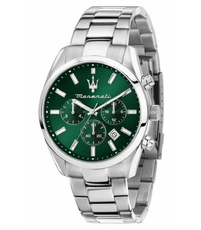 Para Hombre Movimiento Cuarzo Analógico o digital Analógico Tipo de correa Acero Tipo de cristal Mineral Diámetro de la caja 43 mm Resistencia al agua (metros) 50 Color del dial Verde Color de la correa Plateado Color caja Plateado Características extra Calendario