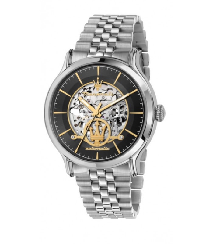 Para Hombre Movimiento Automático Analógico o digital Analógico Tipo de correa Acero Tipo de cristal Mineral Diámetro de la caja 42 mm Resistencia al agua (metros) 100 Color del dial Negro Color de la correa Plateado Color caja Plateado Características ex